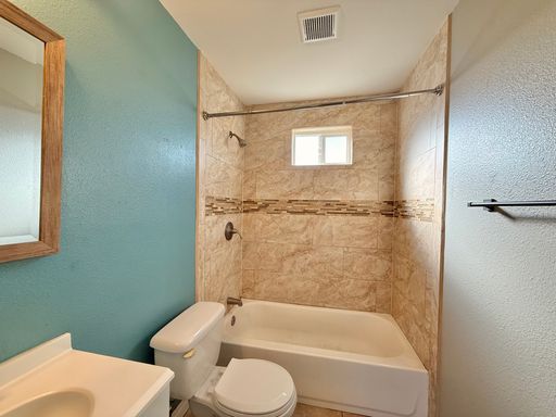 The updated bathroom includes a full bathtub and modern finishes. An enclosed front yard adds privacy and outdoor enjoyment, and the washer and dryer are conveniently located in the back for easy access.