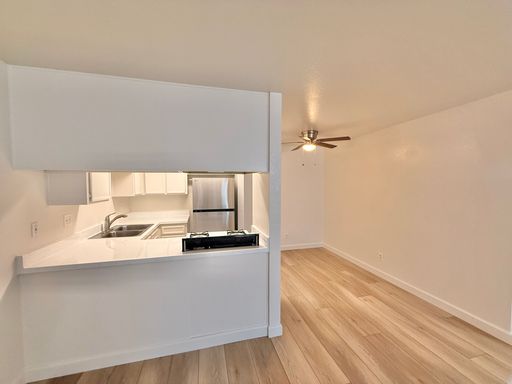 This inviting residence features luxury vinyl plank flooring throughout, fresh interior paint, and a new refrigerator, creating a clean and modern feel from the moment you step inside. The practical layout offers an open living area ideal for everyday living, while the kitchen provides ample storage and workspace. Both bedrooms are well-sized, and the full bathroom is conveniently located to serve the home.
