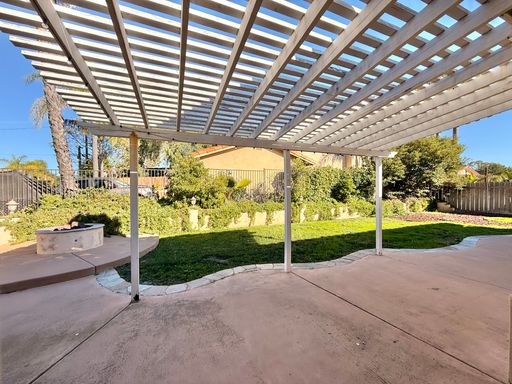 The kitchen features a large island with bar seating, stainless steel appliances, granite countertops, and custom cabinetry, offering plenty of space for multiple chefs to cook and connect. The adjoining great room includes a cozy fireplace for cooler evenings and sliding glass doors that open to a lush, fully fenced backyard. Situated on a corner lot, the home also offers added privacy.