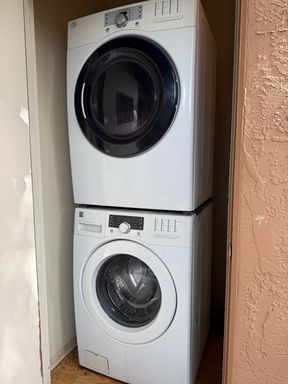 Enjoy seamless indoor-outdoor living as you transition from the large living room onto your private patio. Savor your morning coffee to the sound of birdsong, or dine al fresco while overlooking lush green landscaping. A washer and dryer are conveniently located in the patio storage closet.