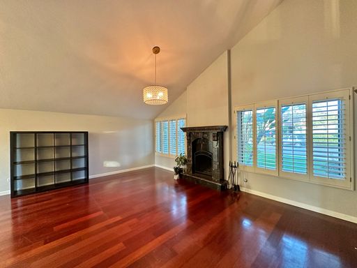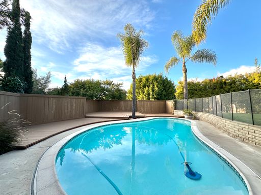 Slide open the glass door to reveal an outdoor oasis featuring a covered patio, a lush grass lawn, and a sparkling pool—ideal for soaking up the Southern California sun. The lower lot is a green thumb's paradise, offering ample space for a vegetable garden to satisfy your culinary aspirations.