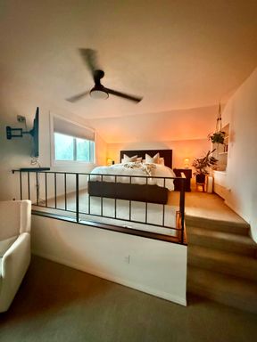 Enter inside and experience the luxury of hardwood flooring that seamlessly flows throughout the downstairs living spaces, creating a warm and inviting atmosphere. The bedrooms, your private havens, are adorned with plush carpeting for that extra touch of comfort. Each bedroom is equipped with ceiling fans to ensure a cool breeze on warm San Diego days.